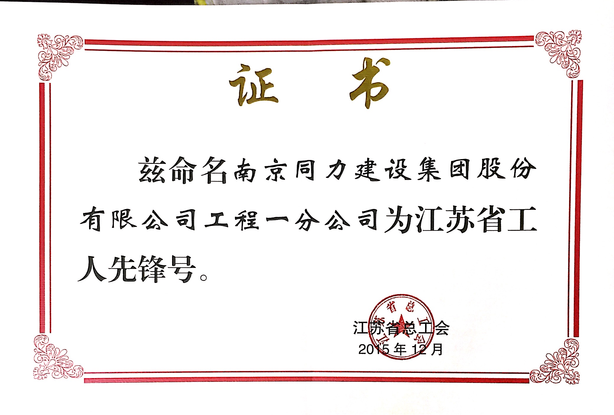 工程一分公司被評為江蘇省工人先鋒號