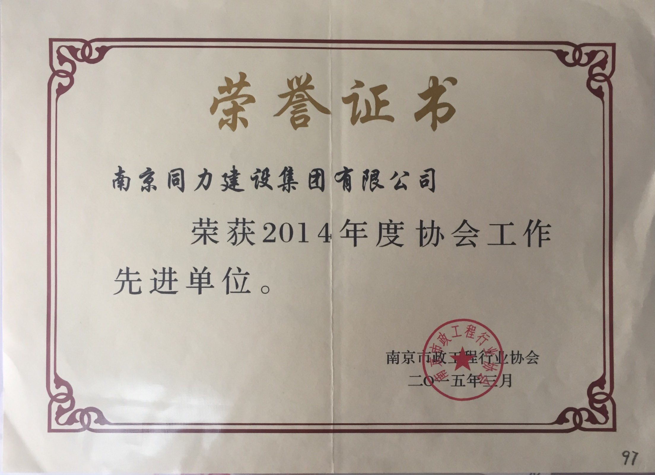 公司榮獲2014年度協(xié)會工作先進單位