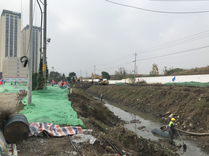 視察中,首先何金雪主任為劉主席介紹了研創園四期水環境提升工程中鞏固民主河的施工情況,講述了鞏固民主河排口整治工程,其中介紹工程起點接浦云路、終點到芝麻河。鞏固河全長約0.9km,現狀河道上口寬18m,河底高程約3.5m-4.0m,并講述智能分流井、調蓄池是如何進行相互配合,達到治水目的。
