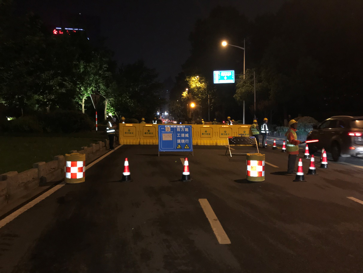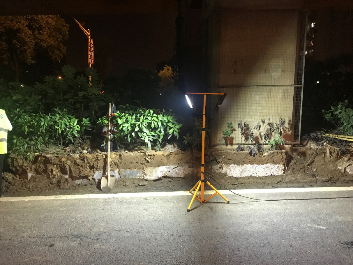 開工后外部條件復雜,名城會、中高考護考、梅雨等都大大影響了工期。開保工至今幾乎有2\3的時間無法正常施工。針對護考、重要活動保供節點等特殊時段,正一方面多方協調,盡可能爭取相對寬松的外部條件;一方面果斷調整工序,在禁運禁噪前夕組織加大力量集中實施產生道大量渣土和噪音的側平石拆除作業,并用圍擋密圍占住原側平石區域防止土方流失。確保了在護考時期可以只施工路緣石鋪貼等不產生噪音的工序。同時為了切實在護考期間將噪音降至最低,經過調研,項目部給各作業班組更換采用太陽能充電鋰電池LED燈等新型照明設備。這類新設備價格不貴,又不用燃油發動機提供電能,不僅解決了燃油發動機的噪音問題,同時移動便利也方便了施工。