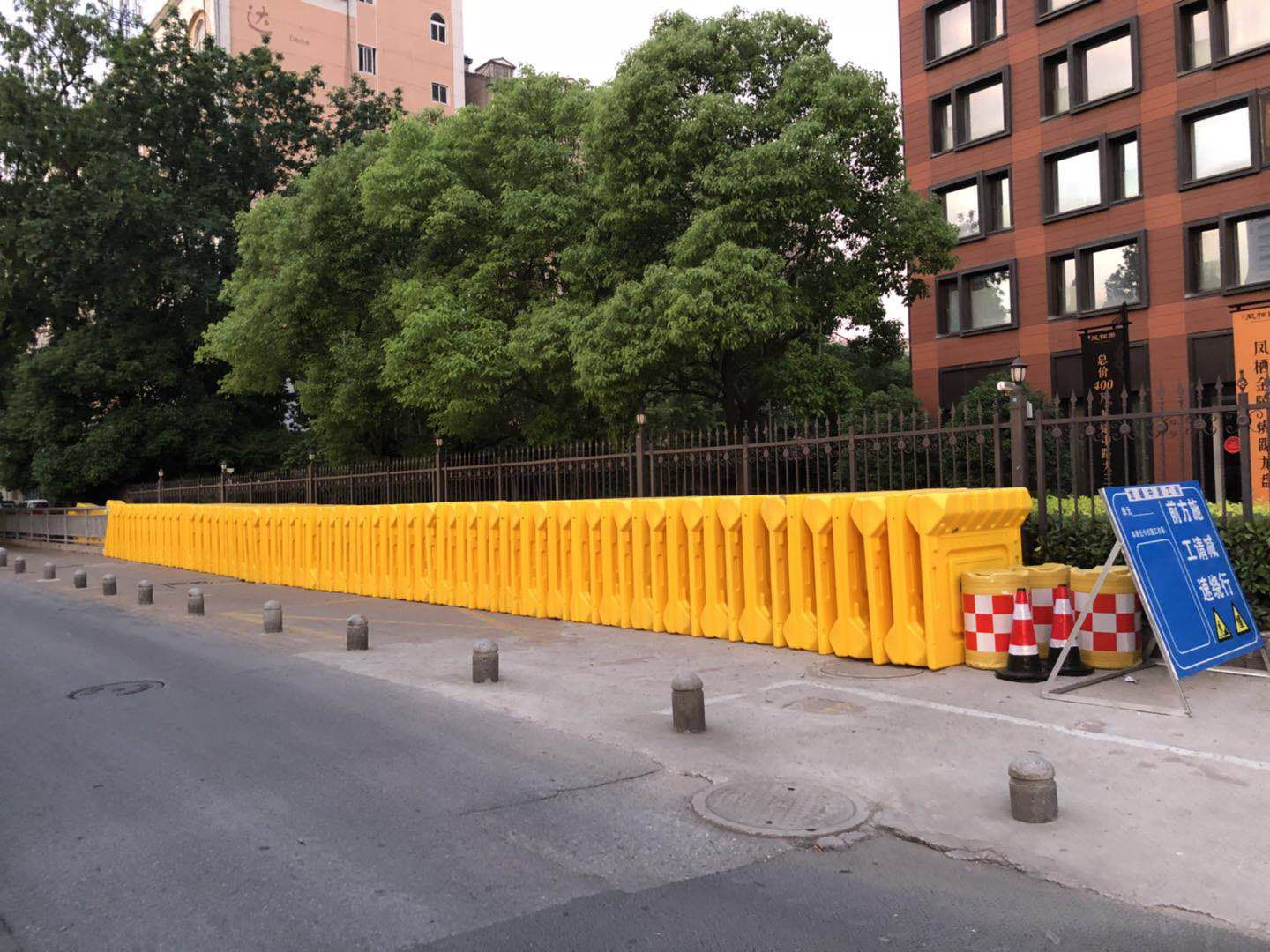 鋪設鋼板保證交通 溝槽攤鋪臨時瀝青 白天圍擋堆放 白天材料及小型機械堆放
